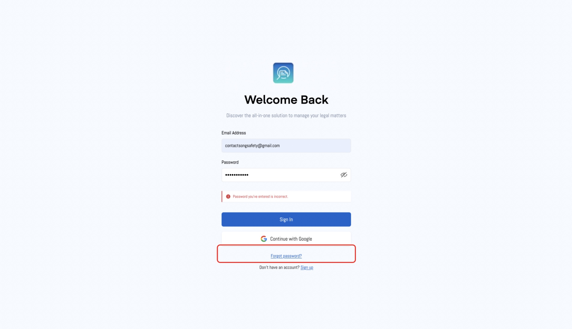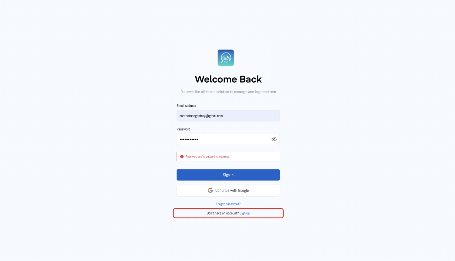 - If you don’t have an account, click the "Don’t have an account? Sign up" link to create a new account.