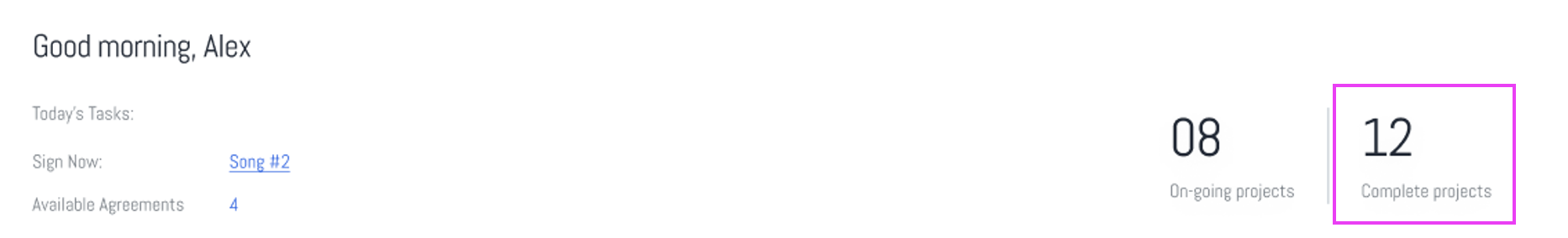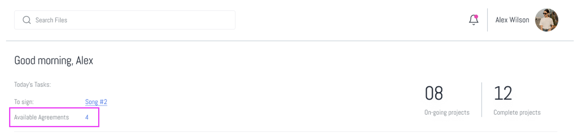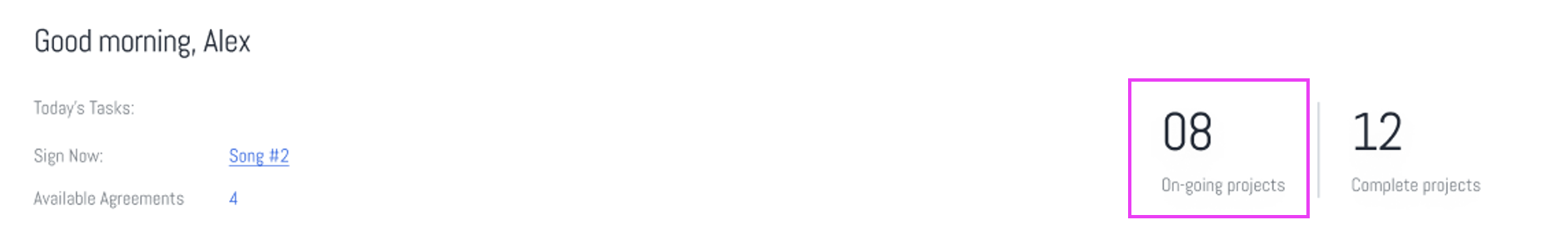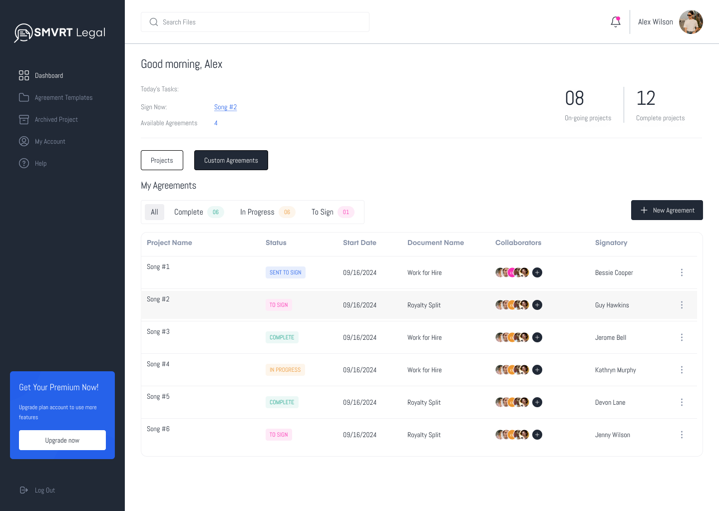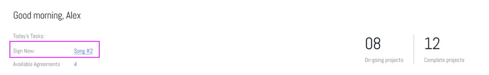 - This section lists the agreements that need immediate attention for signing. It helps users prioritize their tasks for the day.