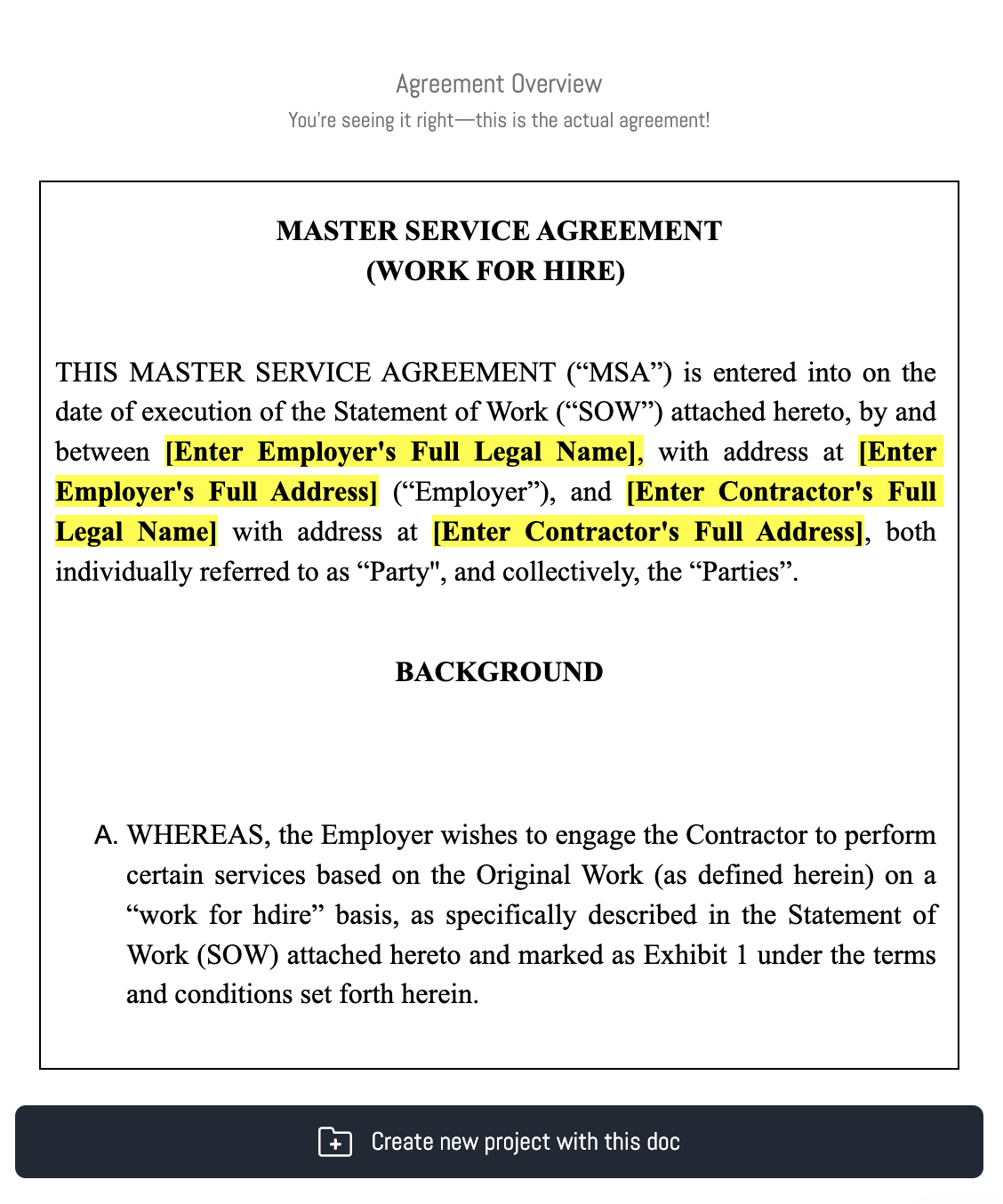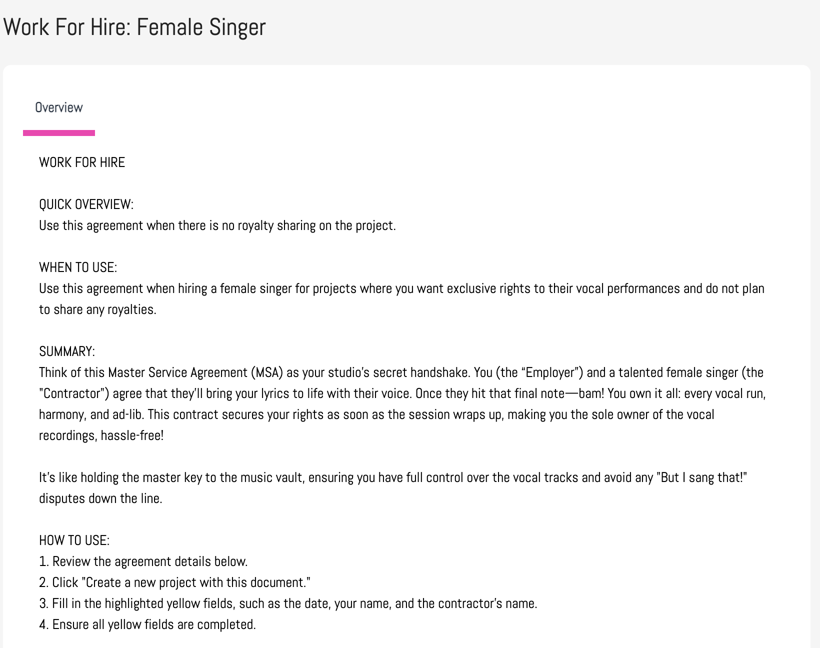 - The overview provides important information on the agreement you are about to use, such as when, how, and important considerations about why you are using it.