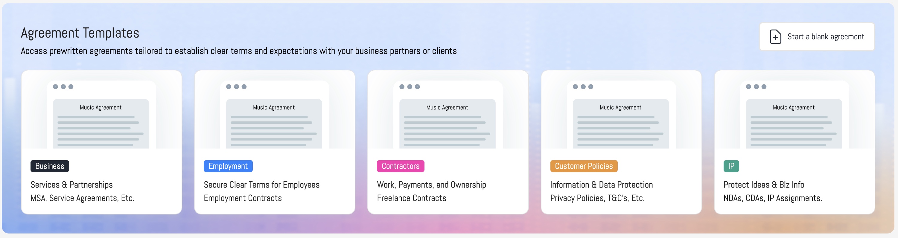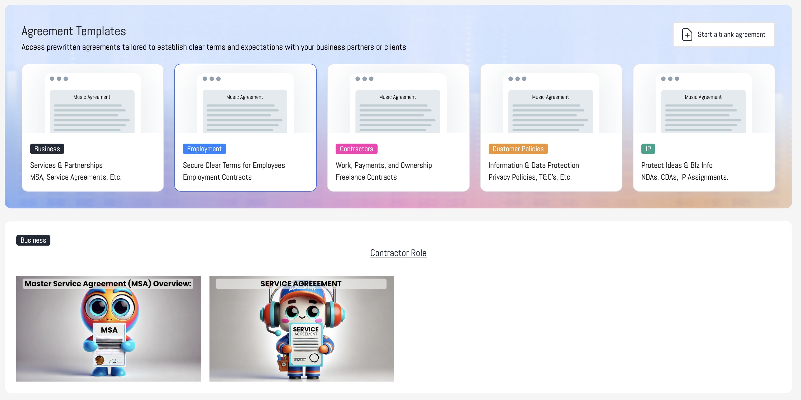 - You are now in the agreement templates section. Here, you'll find a variety of agreements perfectly crafted for every role you're working with.