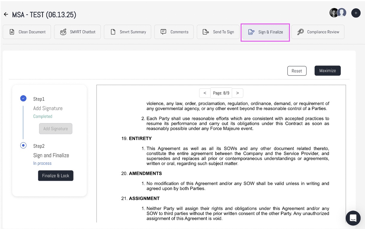 - Select "Finalize & Lock." - This will memorialize your signature: