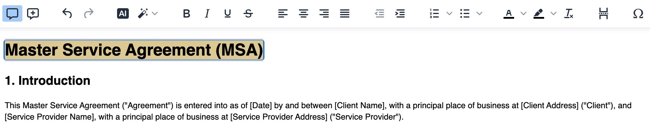 - To add comments, highlight the area you'd like to comment on and click the "bubble + " icon.